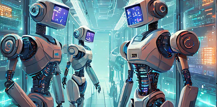 プロンプトは「サーバー空間 擬人化された生成AIロボット 近未来」)